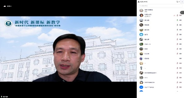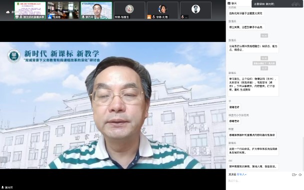 华中师范大学副校长夏立新教授向参与此次活动的学者专家们表示衷心的感谢,向云参与的来自全国各地的学者、一线教师和学生表示最热烈的欢迎。夏校长指出,新修订的义务教育课程方案和课程标准从国家层面厘清了育人目标、校准了改革方向。准确理解和把握新课程方案和课程标准的精神,进一步深化义务教育课程与教学的改革,构建双减背景下核心素养导向的教学结构或学习的形态,作为本次研讨会的指导精神。