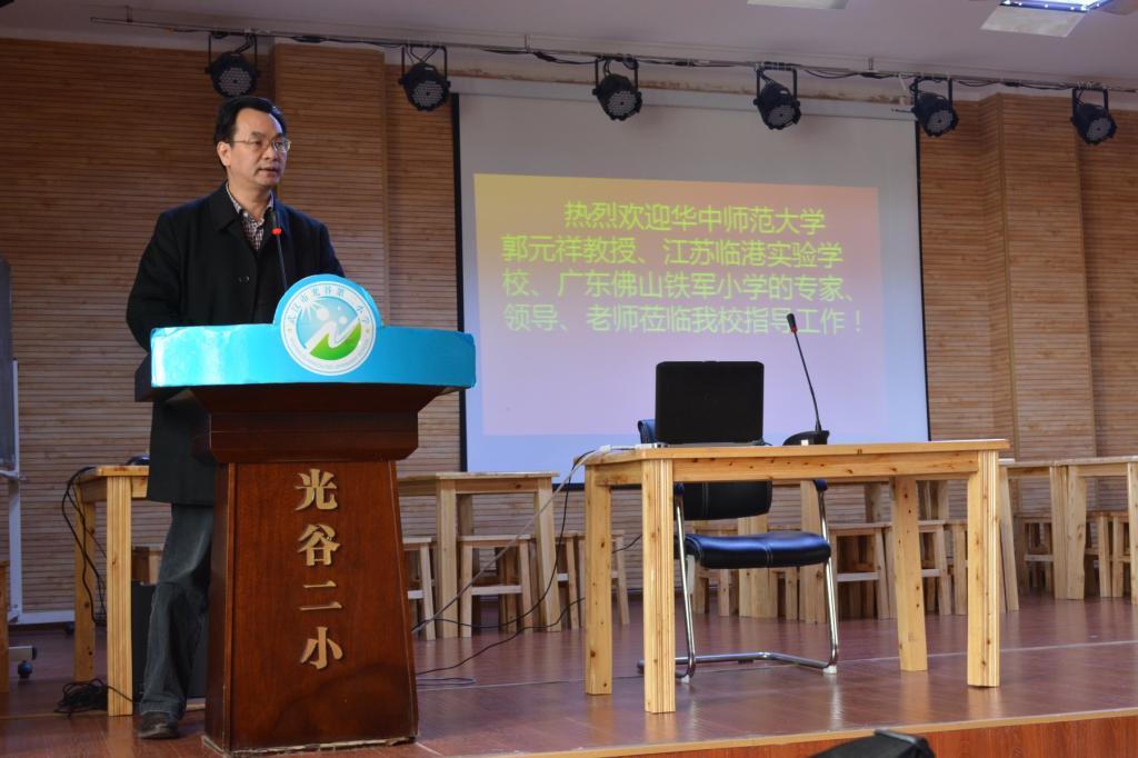 2015年3月27日周五,教育部华中师范大学基础教育课程研究中心在武汉市光谷第二小学成功举办“深度教学—能力生根”教学研讨会,出席此次活动的有华中师范大学郭元祥教授及其带领的团队、江苏临港实验学校刘国平校长及教师、广东佛山市铁军小学曾春玲副校长及教师,光谷二小马友平校长和教师,以及龙泉小学的老师们。