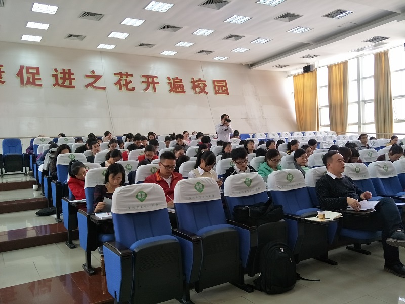 下午,邓老师与王海玉老师基于上午的听课内容为南海中学全体教师做深度教学实施操作方法指导专题讲座。活动由南海中学欧海玲主任主持,王海玉老师结合深度教学研讨课指出,语文观摩课体现了深度教学的理念,并在课堂实践中取得了明显的效果,并结合自身的语文教学经验就如何增强师生在课堂上的一体感做了讲解。随后,邓阳教授结合数学观摩课指出要基于学科实践来培养教师的学科思想,注重培养学生的数学兴趣和实践探究能力,以优化学生在课堂学习中的投入状态。接着,邓老师与在坐的骨干教师进行了现场互动,对教师们在将深度教学的理念融入课堂实践中存在的困惑进行了答疑。