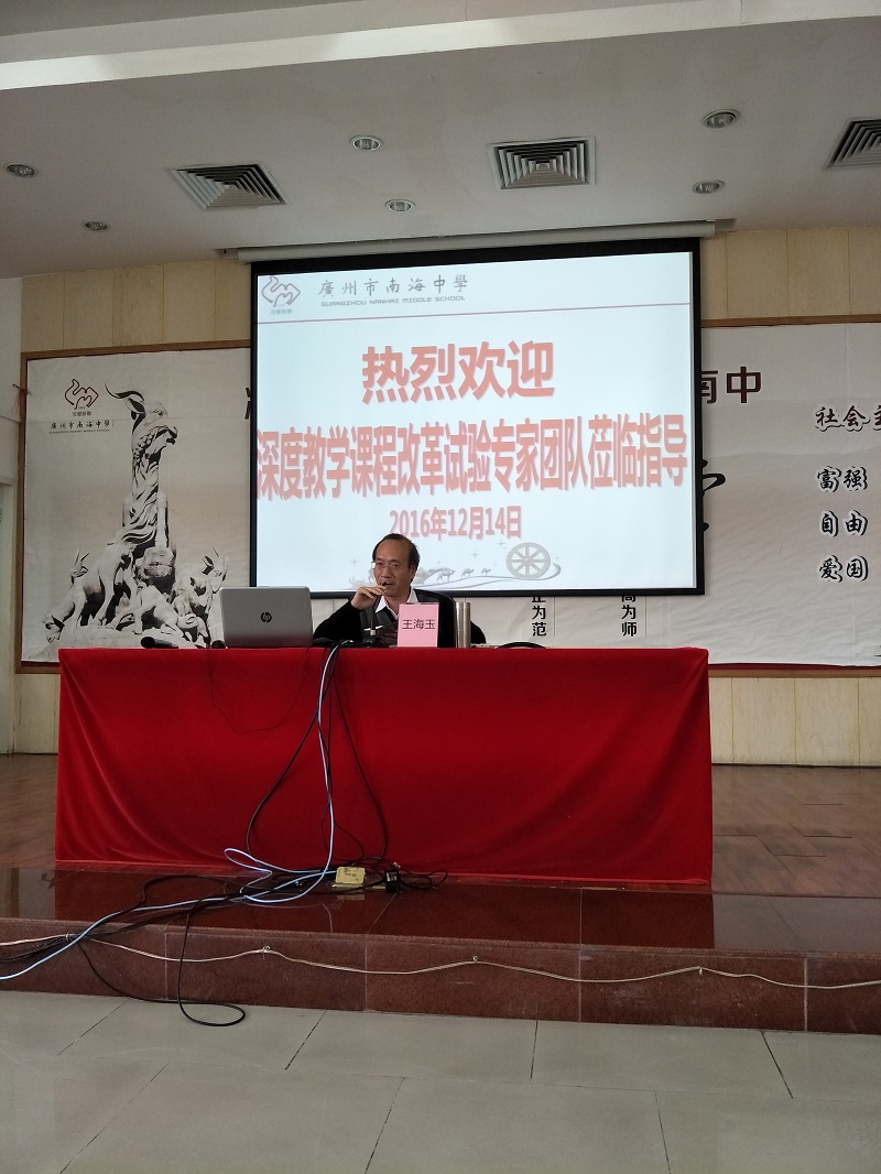2016年12月14日,以教育部华中师范大学基础教育课程研究中心硕士生导师邓阳为首的深度教学课程改革实验专家团队来到广州市南海中学开展深度教学的指导工作,南海中学校领导及骨干教师共90余人共同参加了此次活动。