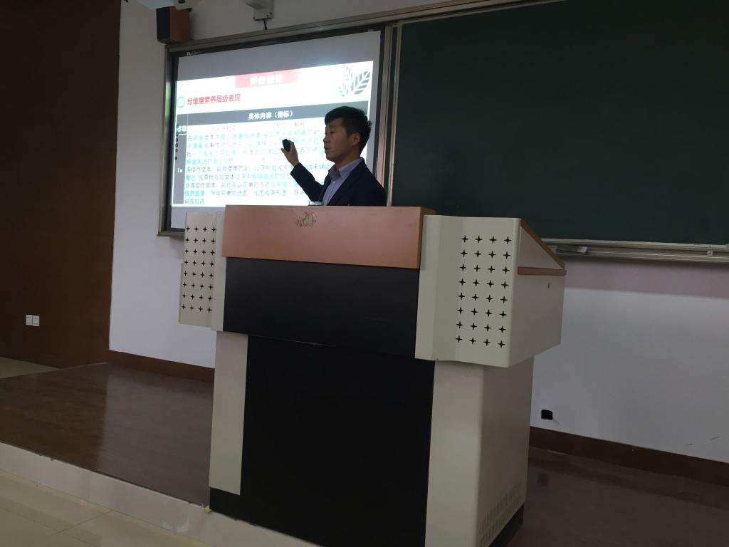 下午,伍远岳博士对小学部和初中部的全体语文教师做了一场专题报告:《初中语文阅读素养测试:PISA的启示》。伍博士从国际大规模评价的缘起引出PISA,并对PISA的测试对象、目的、内容、形式 做了简单介绍,指出PISA与一般考试的区别。接着他重点阐述PISA阅读素养的评价设计,提出PISA阅读素养测试的目的在于评价学生对文本的解读与理解,解释与反思,以及个体在生活中为达到目的运用阅读的能力。基于对学生在职业生活、公共生活和个人生活等不同情境中的阅读需求,PISA阅读测试的文本形式和文本类型具有多样化特征。伍博士还向老师们介绍了PISA阅读素养的层级表现,即阅读素养的三个维度、七个层级的具体指标。最后他认为pisa阅读素养评价设计,对语文教学和评价有很好的借鉴作用和启示:明确学生阅读能力层级标准,使评价可操作化;了解考试命题的能力架构,明确考试测评要点;引入多种情境的阅读体验,评价内容选材也需多样化;语料多元化,重视非连续性文本的使用;重视开放题设计,加强评分指导;加强课程标准、阅读能力架构与试题编制之间的一致性;研制学生阅读能力质量标准。