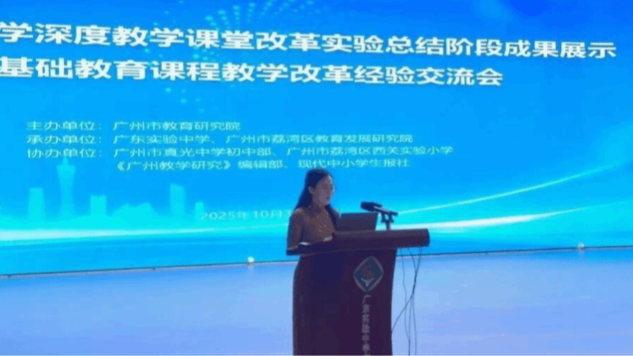 2025年10月30日,广州市中小学深度教学课堂改革实验总结阶段成果展示暨基础教育课程教学改革经验交流会顺利召开,活动由广州市教育研究院主办,广东实验中学、广州市荔湾区教育发展研究院承办,广州市真光中学初中部、广州市荔湾区西关实验小学、《广州教学研究》编辑部、现代中小学生报社协办。华中师范大学教育学院二级教授、博士生导师、国家级重大人才工程特聘教授、深度教学团队首席专家郭元祥,核心专家华东师范大学二级教授、广西师范大学特聘教授、博士生导师杨小微,华东师范大学教育学部二级教授、博士生导师吴刚平,华南师范大学教授、博士生导师、国家重大人才工程青年学者入选者曾文婕,学科专家湖北第二师范学院教师教育学院副院长、教授刘晶晶,深圳市龙华高级中学教育集团高中部正高级教师夏良英,深圳市初中语文兼职教研员、中学高级教师张学新,原黄埔区中学数学教研员、正高级教师管国文,武汉市江岸区花桥小学高级教师周文娜,核心成员华中师范大学教育学院博士研究生李淑婷、熊艺欣参会。本次活动由广州市教育研究院课程教材发展研究所课程改革与实验研究室主任罗曼莉主持,广州市教育研究院党委副书记、纪委书记周鹏,广东实验中学党委副书记、校长蔡骘,广州市荔湾区教育局副局长曾锐,广州市教育研究院课程教材发展研究所所长邹立波等领导出席活动。线下参会的还有广州市各区教研机构领导、深度教学项目工作负责人,省、市属学校课程教学改革工作相关负责人,市深度教学项目试点校校级领导及骨干教师代表,广州市2024年、2025年省基础教育课程教学改革深化行动承担单位,以及帮扶单位湛江市代表等共计500余人。活动全程线上直播,全体试点校深度教学项目分管领导及各学科教师逾两千人线上收看。