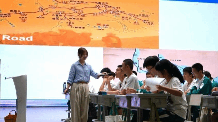 郭教授作精彩点评。郭教授首先肯定了这节跨学科主题课,认为李老师的教学活动设计精妙、自然流畅,充分讨论了语篇的文化意义,有效体现了课堂的深度、广度与关联度,还能够超越语篇的语言表层,深入背后的核心观念,从对古代的丝绸之路、明代的下西洋到当今的一带一路的梳理中引导学生认识中华文化软实力,以及人类命运共同体建构的意义所在,充分调动了学生学习的积极性与主动性。郭教授进一步指出,深度教学倡导对文本的深度理解与把握,要求学生在开放性探索中发展核心素养、塑造价值观念,通过实践锻炼学生解决复杂问题的能力,在此过程中产生对语言民族性、思想性、文化性与实践性的深切理解和体会。此外,还应回应向现实敞开、向历史扎根、向文化浸漫、向生活还原、向时代靠近等理念,积极引导学习活动的进阶与深化,持续深化课堂教学改革。