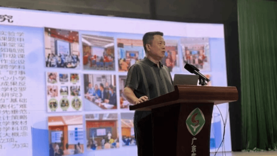 广州市番禺区教师发展中心科研部主任李进成作《三维融合·三阶递进:番禺区深度教学三年改革实践与育人突破》报告分享。李主任首先梳理项目基本情况与组织保障体系,提出三阶递进的深度教学实施策略,展示“问题导向、实践驱动、成果引领”的区域教育改革推进机制,并以高质量育人征程为目标表达对番禺区基础教育发展的未来展望。