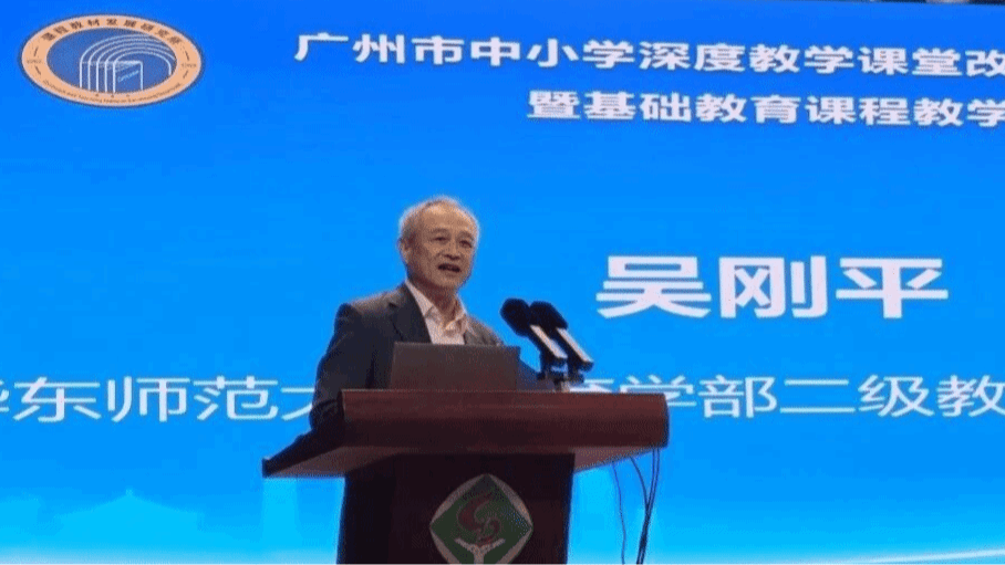 华东师范大学教育学部二级教授、博士生导师吴刚平致辞。吴教授指出,深度教学具有前瞻性和引领性,底层逻辑聚焦学生与知识的关系,以内化于心、外化于行为价值目标,倡导主动探索的学习方式,关注学生学习的积极性与主动性,是广州市教育质量提升的理论支撑。