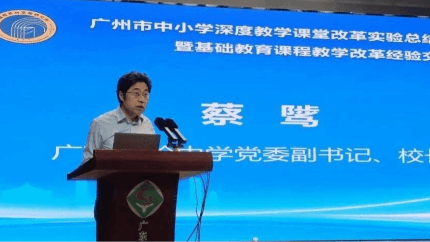 会议伊始,广东实验中学党委副书记、校长蔡骘致辞。蔡校长首先向关心、支持学校发展的教育同仁致以诚挚谢意,并表示学校将始终致力于广州基础教育高质量发展,突出体育、艺术、科技、劳动特色,坚持立德树人,以课堂改革为核心,唤醒学生内驱力,引导其走向深度、真实的学习。同时,推动教师深耕课标、重构设计,用深度教学点燃学生对世界的好奇与对知识的渴望,携手共促教育均衡,预祝本次交流会圆满成功!